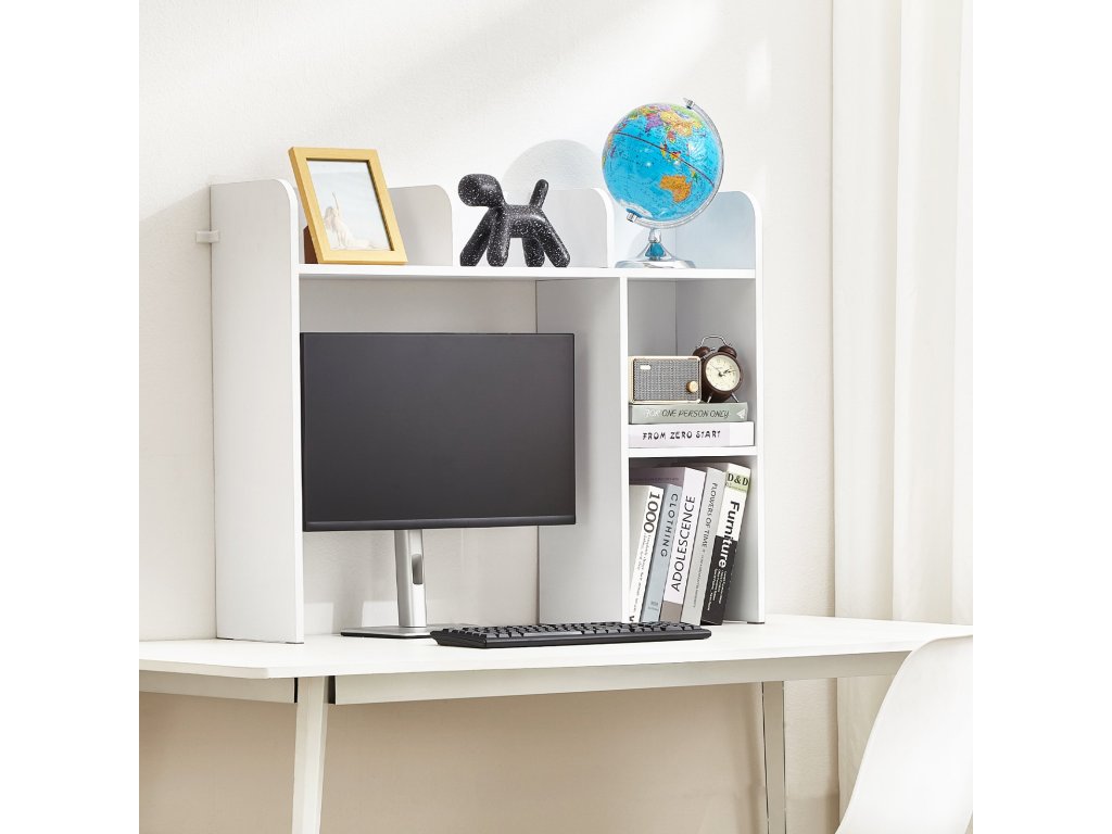 A könyvek, irodai kellékek és egyebek rendszerezésére szolgáló több rekesszel felszerelt íróasztal-polcsín segít rendezett munkaterületet kialakítani és növeli a termelékenységet.
