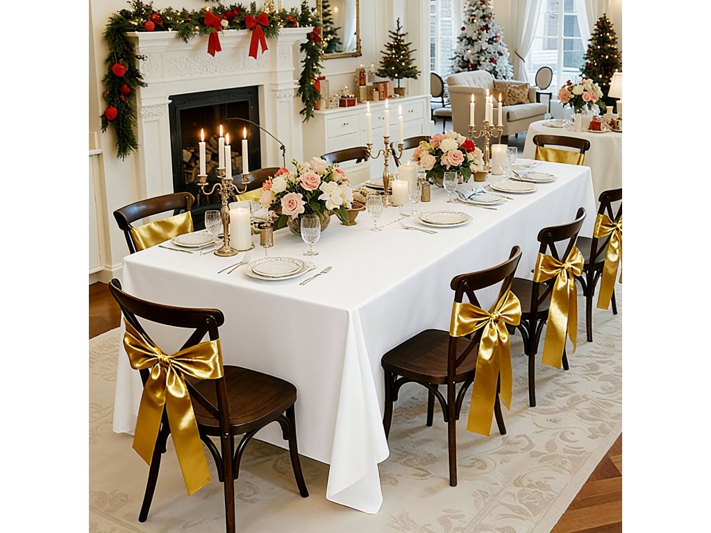 A prémium poliészter anyagból készült elegáns terítő kiemeli asztala általános megjelenését. Tökéletes esküvőkre, ballagásokra, születésnapokra és más különleges alkalmakra, és egy csipetnyi előkelőséget és stílust kölcsönöz az eseménynek.