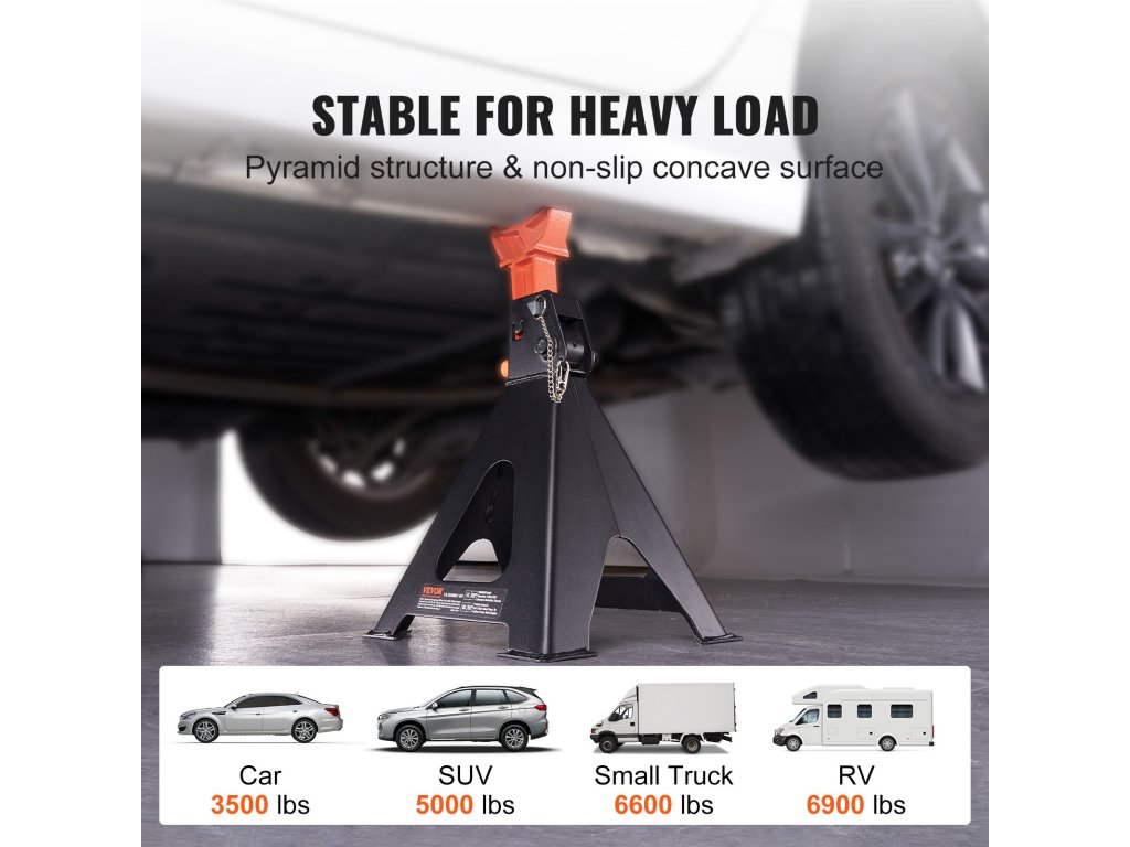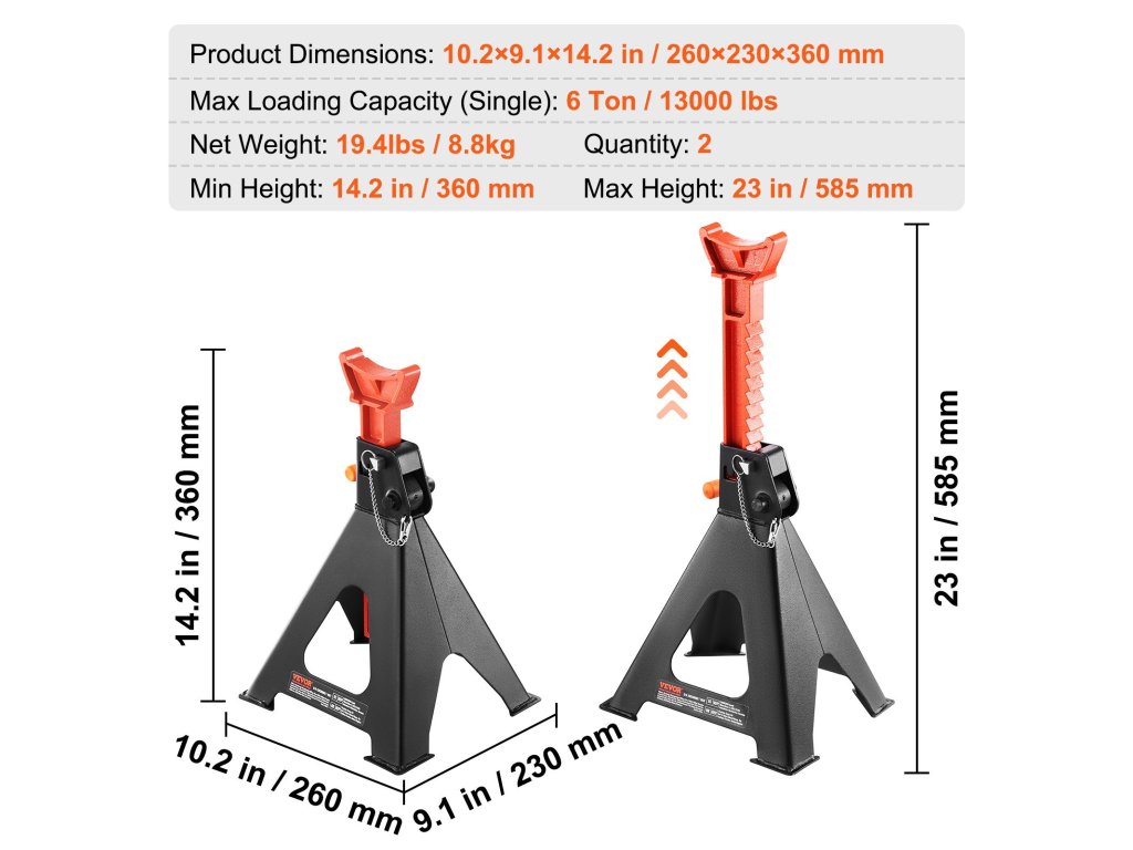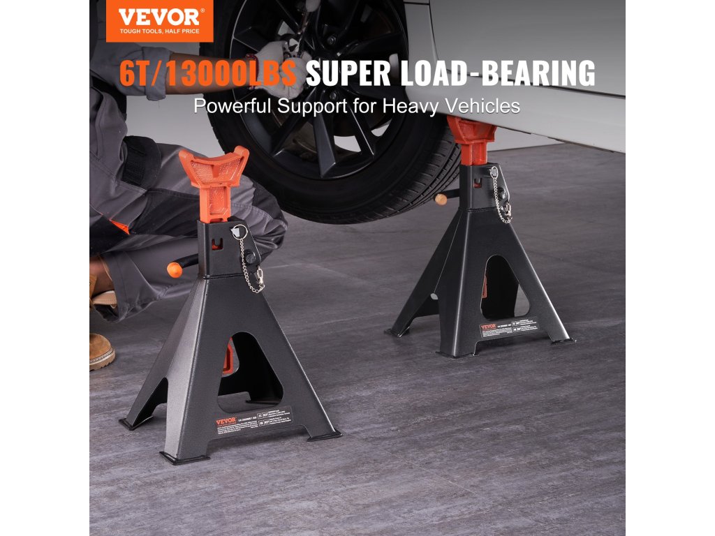Stojany na zdviháky VEVOR s nosnosťou 6 ton sú navrhnuté tak, aby vydržali. Kvalitné zvary na celej konštrukcii zaručujú, že tieto stojany zvládnu aj tie najťažšie práce. Odolná oceľová konštrukcia poskytuje pevné a dlhotrvajúce riešenie na údržbu vozidla. Tieto stojany sú skonštruované tak, aby vydržali náročné používanie bez toho, aby bola ohrozená bezpečnosť alebo výkon. Vysokokvalitné materiály a konštrukcia znamenajú, že tieto stojany sú spoľahlivé na domáce aj profesionálne použitie. Odolná konštrukcia zaručuje, že tieto stojany na zdviháky budú používateľom dobre slúžiť mnoho rokov.