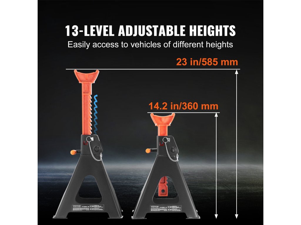 Rozsah nastaviteľnej výšky je 14,2 až 23 palcov. Vďaka tejto vlastnosti sú univerzálne a vhodné pre rôzne typy vozidiel, od nízkoprofilových športových vozidiel až po zdvihnuté nákladné vozidlá. Vďaka variabilnej výške si používatelia môžu nájsť ideálnu úroveň opory pre svoje potreby. Či už pracujete na kompaktnom alebo väčšom vozidle, tieto stojany sa dajú nastaviť tak, aby poskytovali správnu výšku zdvihu. To je dôležité pre tých, ktorí vlastnia viacero vozidiel alebo pracujú v rušnom prostredí dielne. S týmito nastaviteľnými stojanmi na zdviháky získate vysokokvalitné výrobky. Tieto stojany sa dajú efektívne používať v každej garáži.