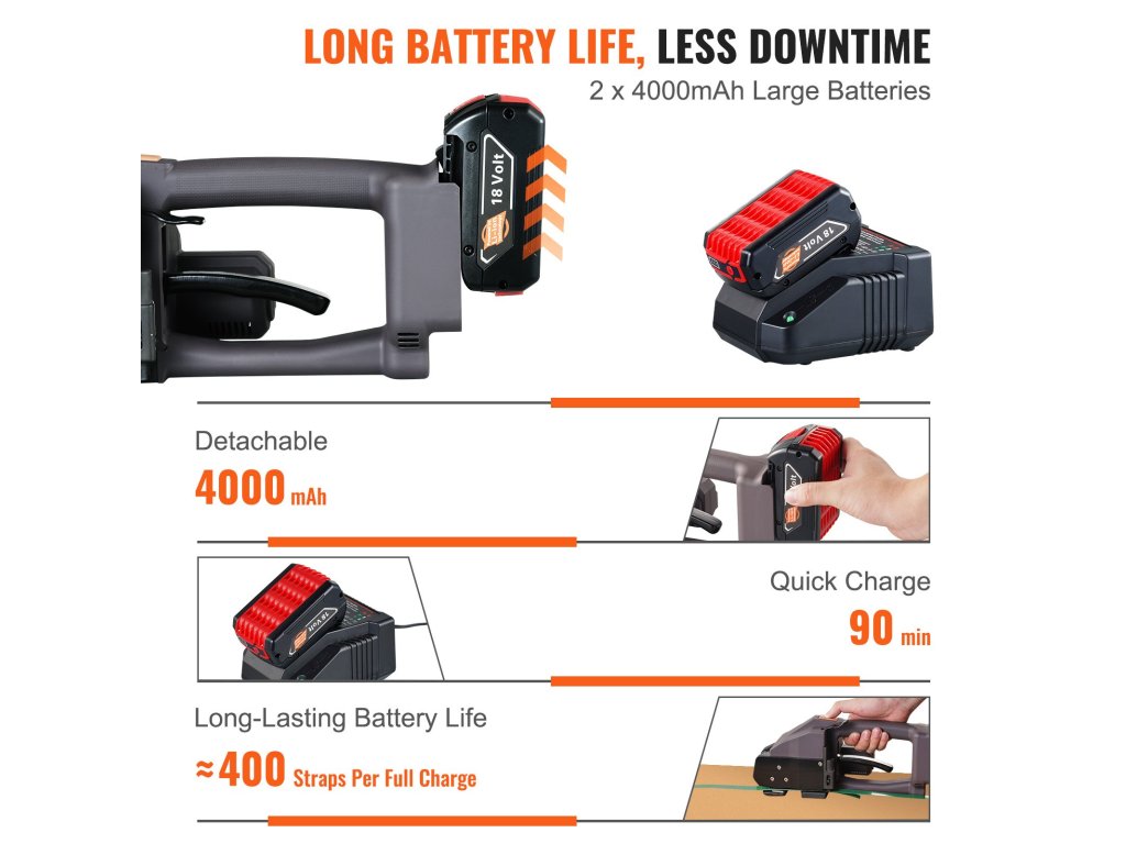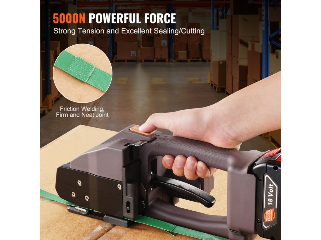 Az erős kefe nélküli motornak köszönhetően ez az elektromos szalagvágó stabil és erőteljes teljesítményt nyújt. A szalagok meghúzása egyetlen gombnyomással gyerekjáték; nincs szükség izmokra. Mindenféle csomagolási munkához kiválóan alkalmas, a papír és alumínium csomagolásától kezdve az acél és fa csomagolásáig.