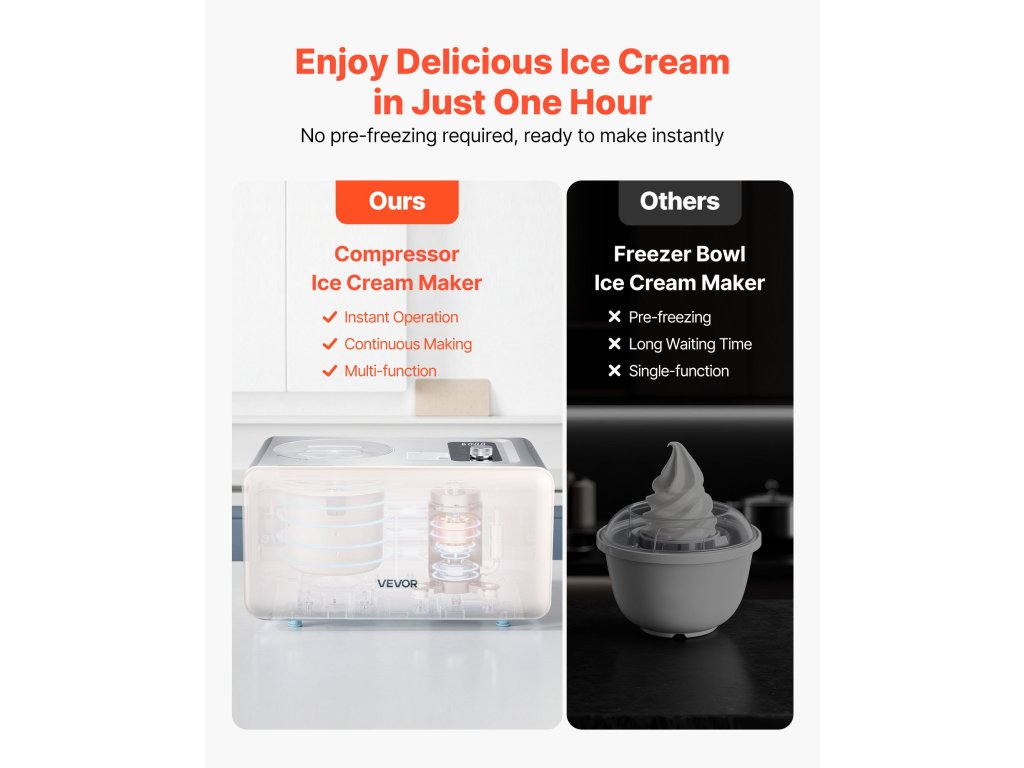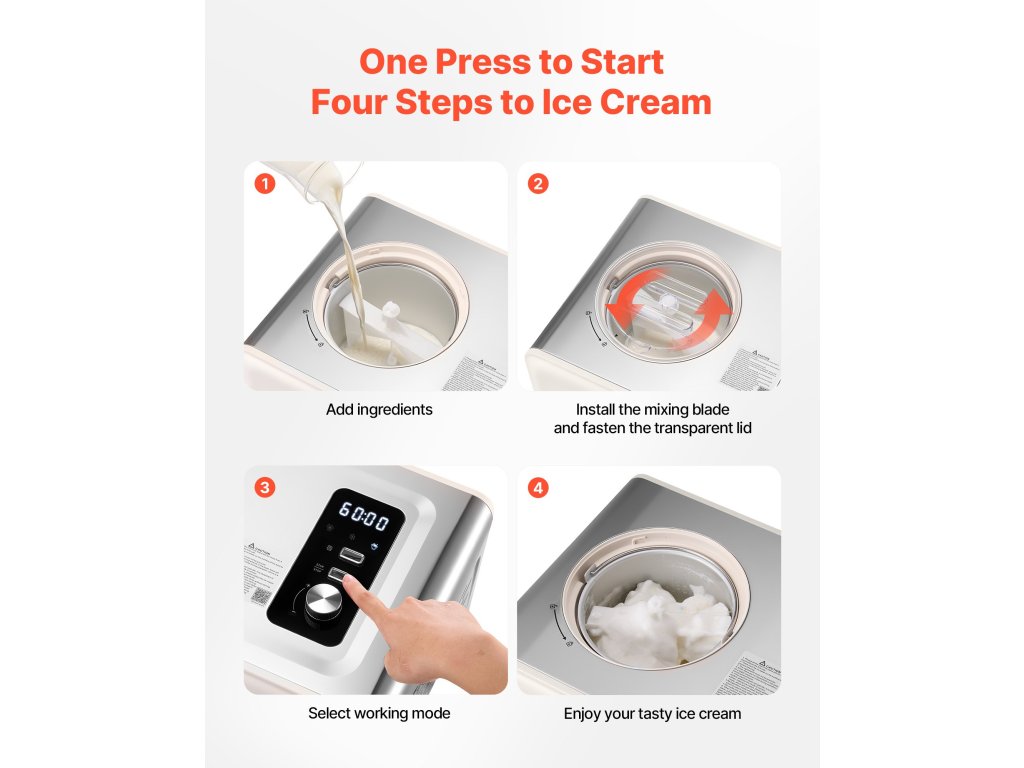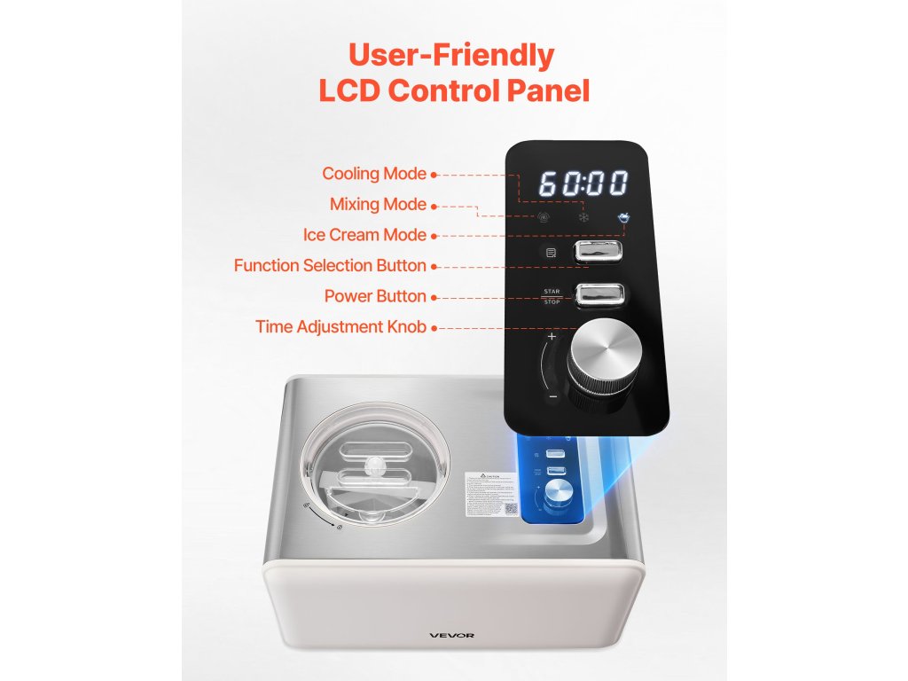 Ezzel a 2 negyedliteres fagyasztott joghurt- és jégkrémkészítővel könnyedén készíthet édes emlékeket a konyhájában. Mivel nincs szükség előfagyasztásra és négy üzemmód közül választhat, élvezheti a gyors, csendes fagylaltkészítést és a családdal töltött kellemes pillanatokat.