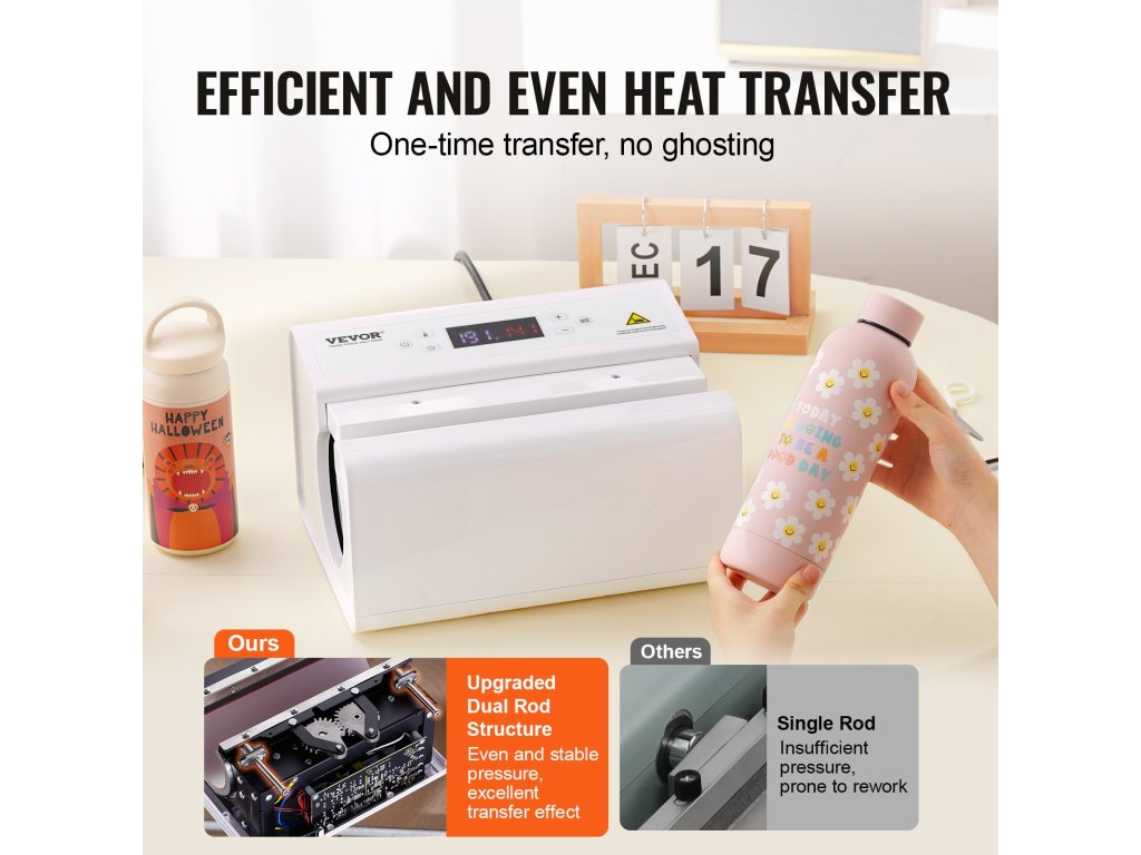 Az egyenletes fűtési technológia biztosítja az egyenletes, kiváló minőségű átviteli eredményt minden bögrén, a fakulás problémája nélkül. Akár kerámia, akár fém bögrékkel dolgozik, ez a bögreprés gyorsan és egyenletesen viszi át a mintákat, és különböző méretekhez és anyagokhoz alkalmas.