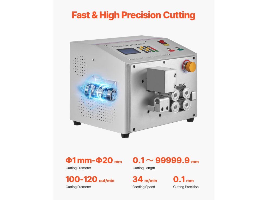 Ez a hőre zsugorodó csövek vágására szolgáló automata gép többféle anyag hatékony és pontos vágását teszi lehetővé. Φ1 mm és Φ20 mm közötti vágási átmérővel, 0,1 mm és 99999,9 mm közötti vágási hosszal, 0,1 mm-es vágási pontossággal, automatikus működéssel és felhasználóbarát kezelőpanellel rendelkezik, ami megbízható vágási teljesítményt biztosít.