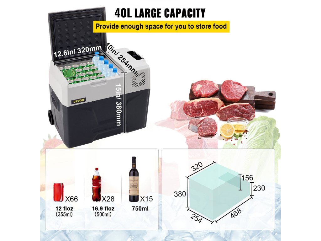 40L automatikus hűtőszekrény továbbfejlesztett kompresszorral a gyors hűtéshez 1,5 óra alatt, amely magas és alacsony hőmérsékleten is képes tárolni, kiváló működést biztosít 16 ~ 38 ℃ / 60,8 ~ 100,4 ℃ tartományban.