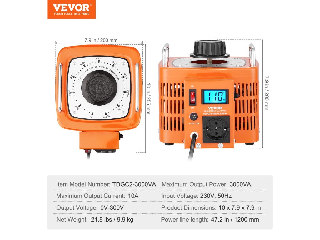 Transzformálja a feszültséget precizitással és nyugalommal! Változó feszültségű transzformátorunk 0-300 V-os beállítási tartományt, biztosítékokat, hőszabályozó kapcsolót, visszaállítható túlterhelésvédelmet és CE tanúsítást kínál a stabil áramellátás érdekében.