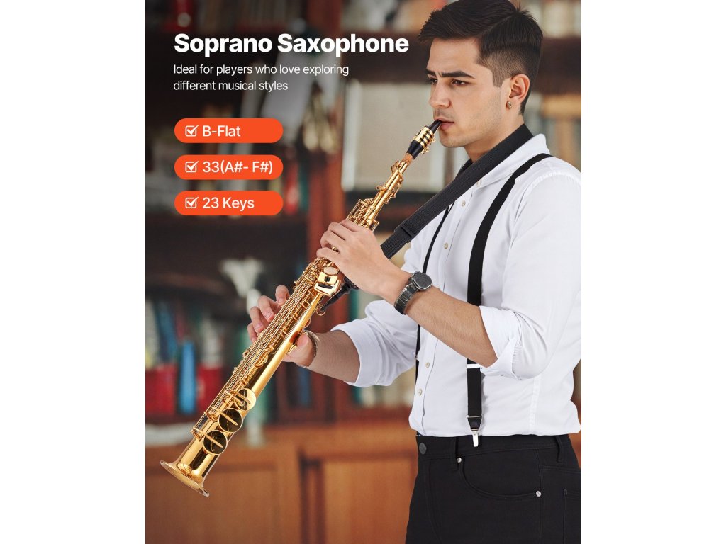 B♭-dúr szopránszaxofon, réz, 23 billentyű, tok és tartozékok