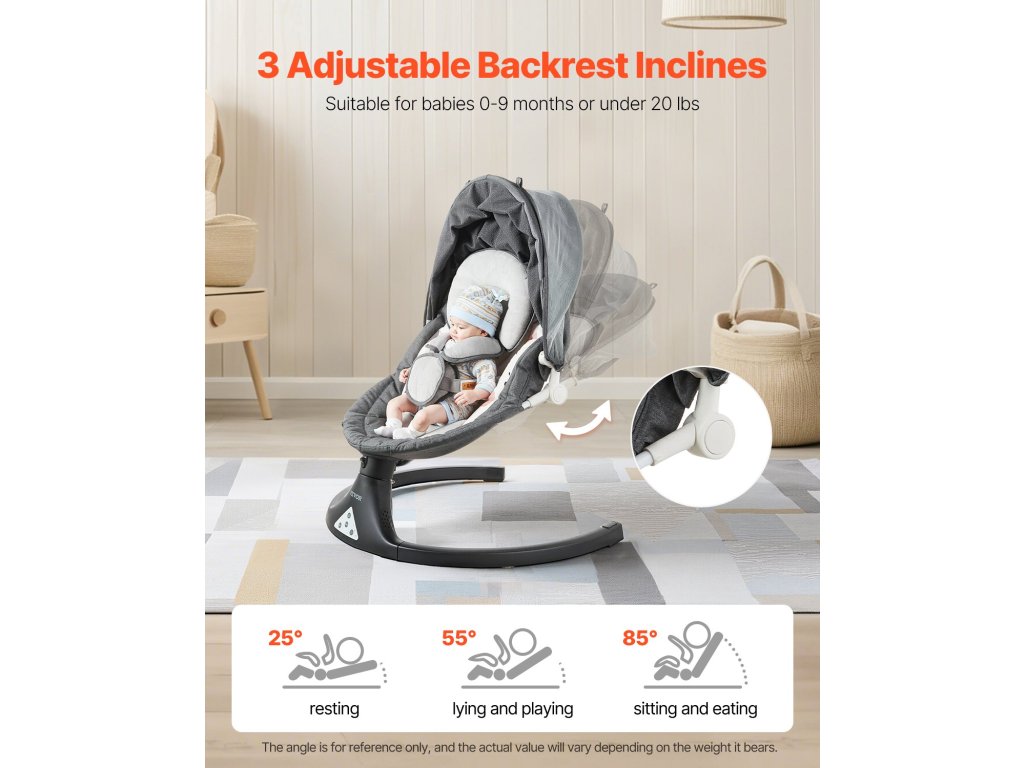A 3 állítható ülésszöggel rendelkező babahinta lehetővé teszi, hogy megtalálja a gyermeke számára tökéletes pozíciót, akár szundikál, akár játszik, akár eszik. A gyengéd hintamozgás segít nekik a gyors pihenésben, megfelel a növekvő gyermeke igényeinek, és hosszabb használatot biztosít.