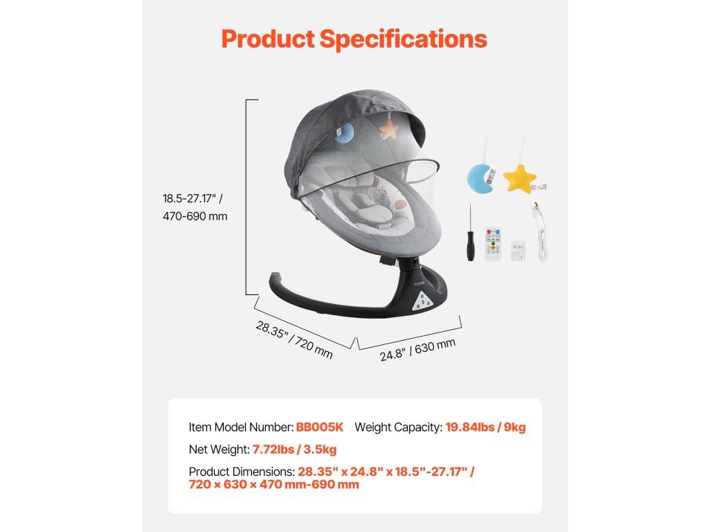 Adjon babájának egy kényelmes és megnyugtató helyet a babahintánkkal! Az 5 sebességgel, 3 állítható üléspozícióval, PVC érintőképernyővel, távirányítóval, Bluetooth zenével, 10 előre beállított altatódallal, 5 pontos biztonsági övvel, szúnyoghálóval és 2 imádnivaló játékkal rendelkező hinta tökéletes 0-9 hónapos vagy 20 kg-os babák számára.