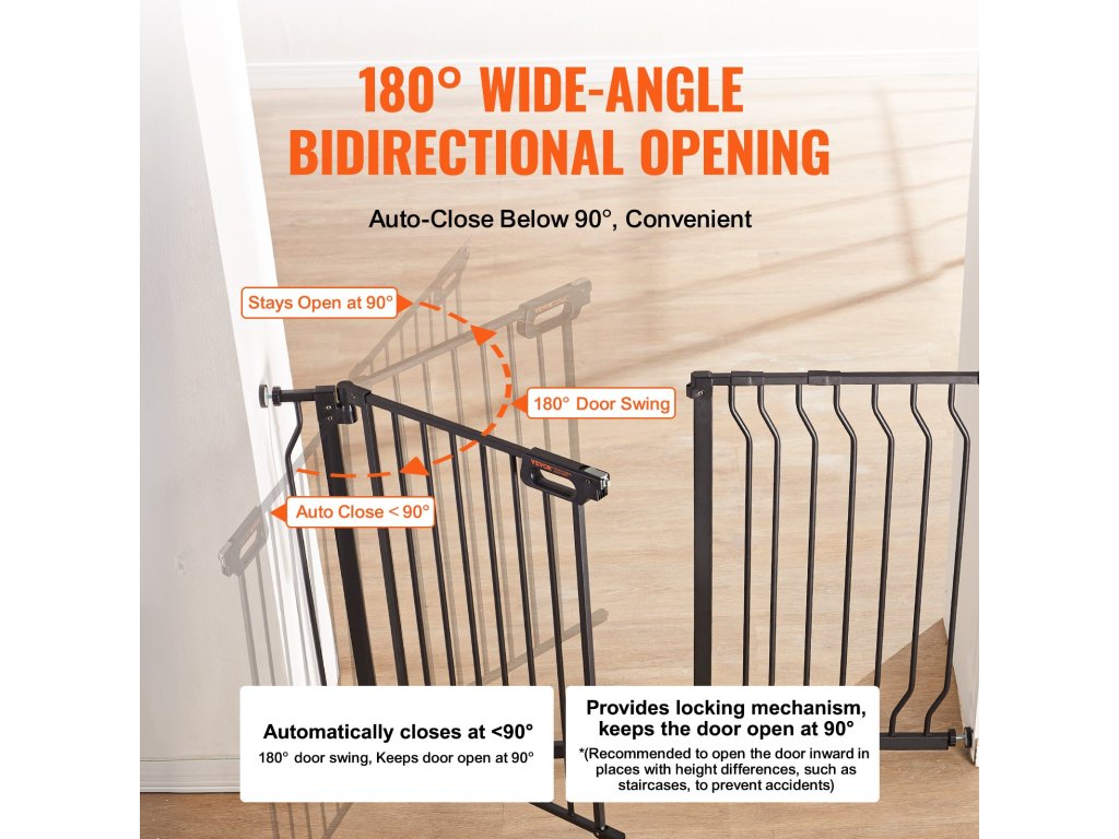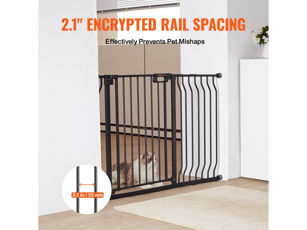 A több mint 21 hüvelykes nyílásszélességgel a babakocsik könnyen áthaladhatnak rajta. Lépcsőkapunk 30 hüvelyk magas, így biztosítva, hogy a kis kalandorok és izgatott háziállatok ne ugorjanak át rajta.