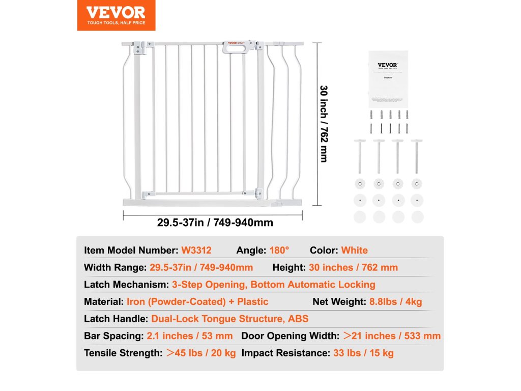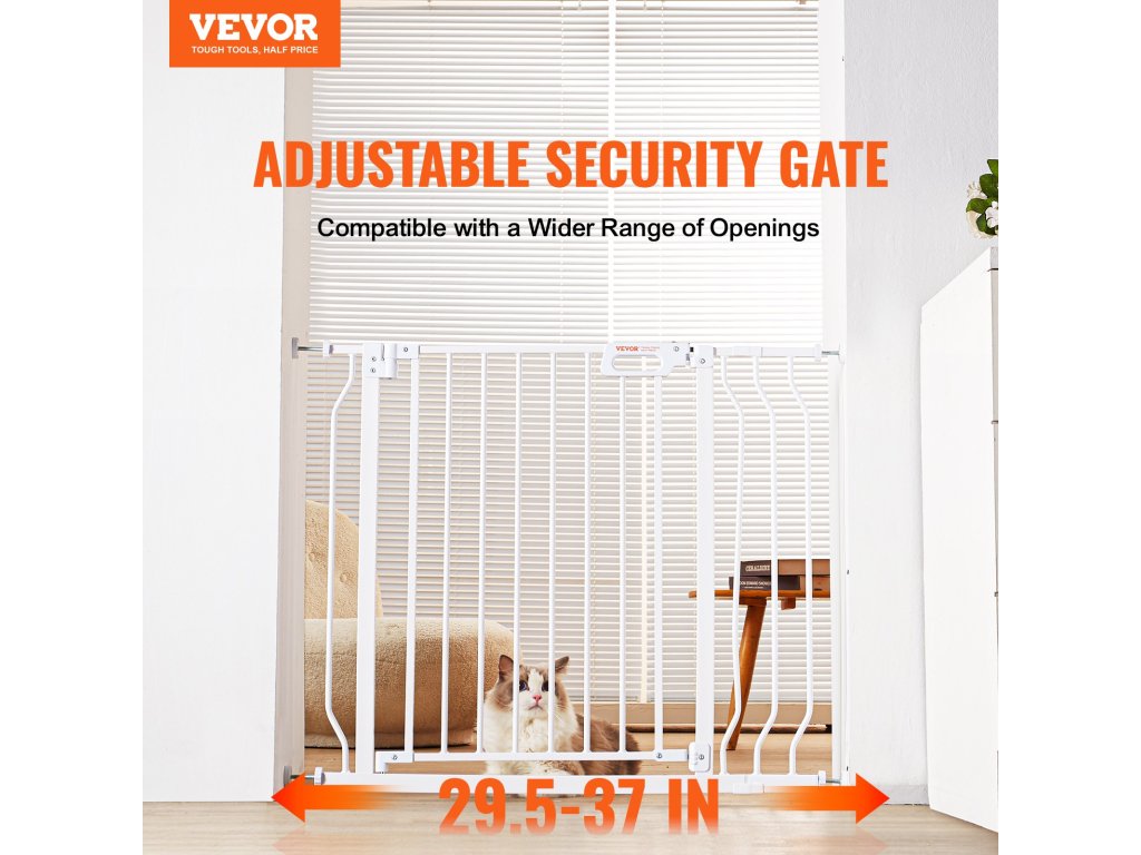 A több mint 21 hüvelykes nyílásszélességgel a babakocsik könnyen áthaladhatnak rajta. Lépcsőkapunk 30 hüvelyk magas, így biztosítva, hogy a kis kalandorok és izgatott háziállatok ne ugorjanak át rajta.