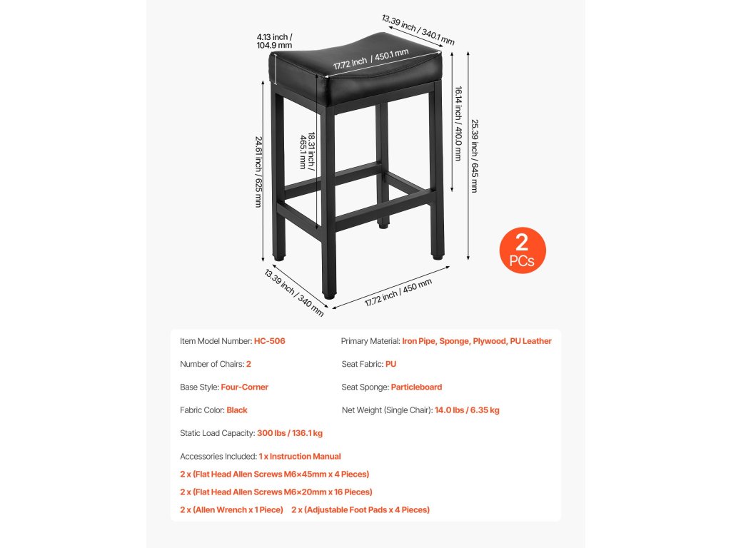 Bárszék 2 db 62 cm, műbőr, fém lábak, háttámla nélkül