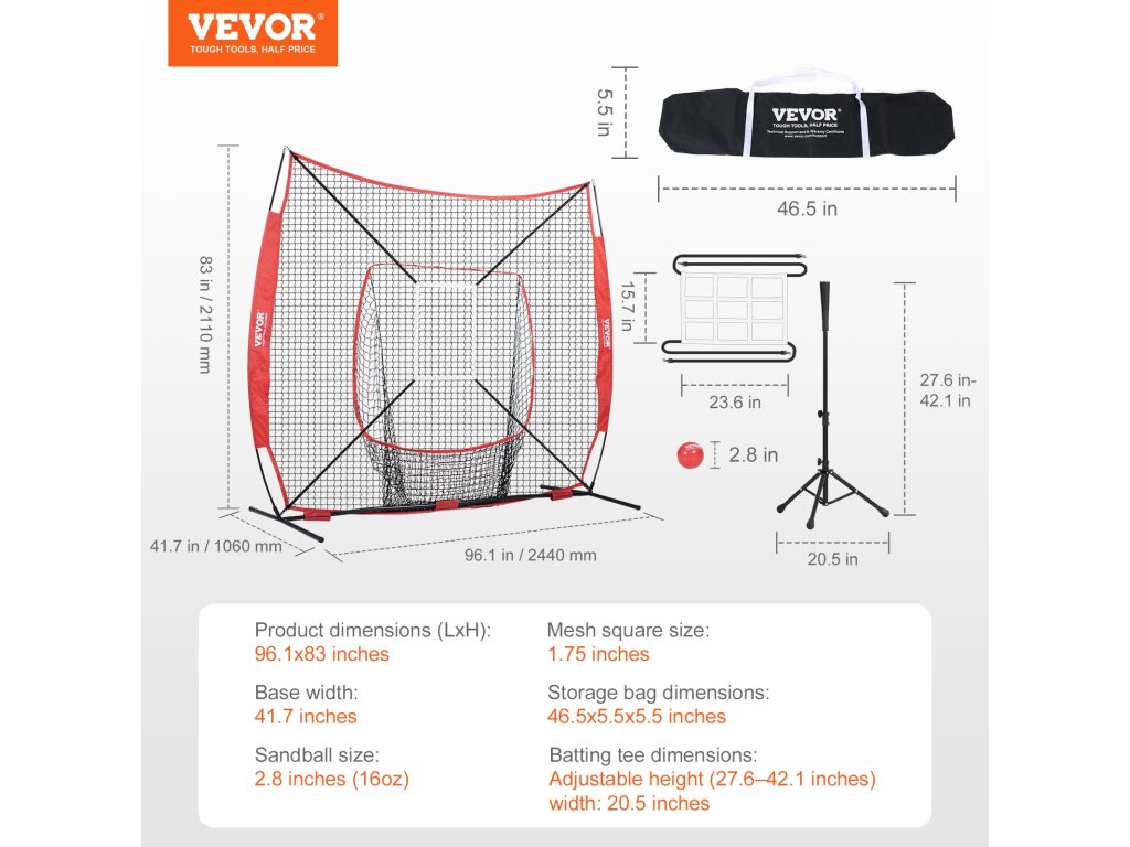 Baseball és softball edzőháló 7×7 láb, hordozható, kerettel, fedéllel