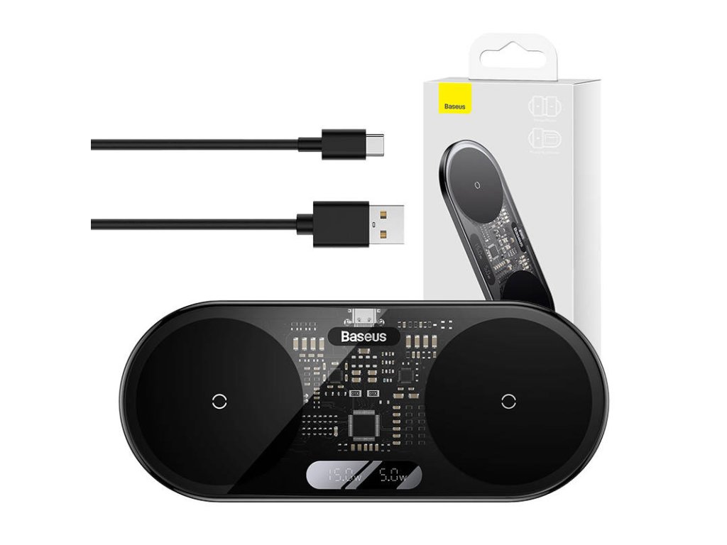 Baseus digitális LED kijelzős Dual Qi vezeték nélküli töltő, 20W