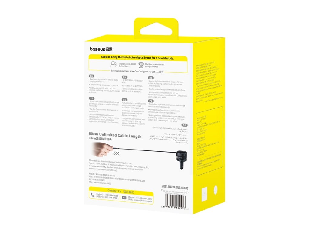 Baseus Enjoyment Max autós töltő USB-C+USB-C kábellel 60 W fekete