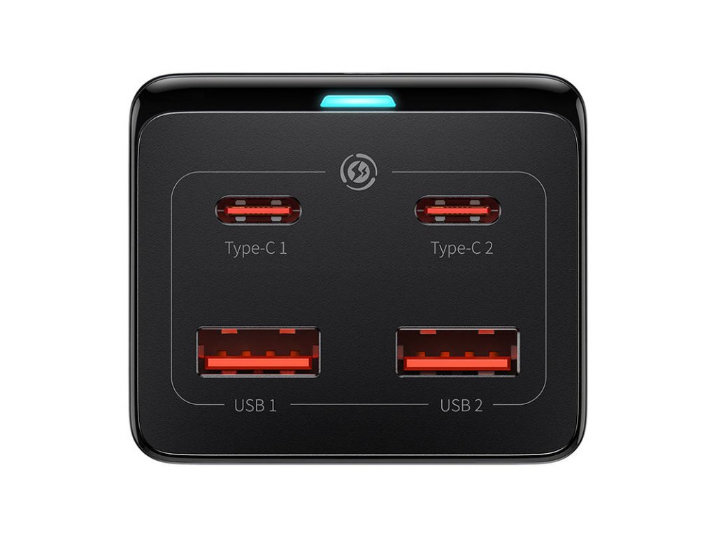 | Kimeneti áram | USB-C 1/2: 5V/9V/12V/15V⎓3A, 20V⎓5A USB1/USB2: 5V/9V/12V/20V⎓3A USB-C1 + USB-C2: 65 WATT + 30 WATT / 30 WATT + 65 WATT USB1 + USB2: 5V⎓3A USB-C 1/2 + USB 1/2: 65 WATT + 30 WATT USB-C1 + USB-C2 + USB 1/2: 60 WATT + 20 WATT + 18 WATT USB-C1 + USB-C2 + USB1 + USB2: 60 WATT + 20 WATT + 15 WATT |