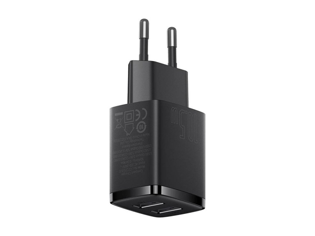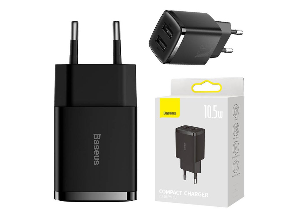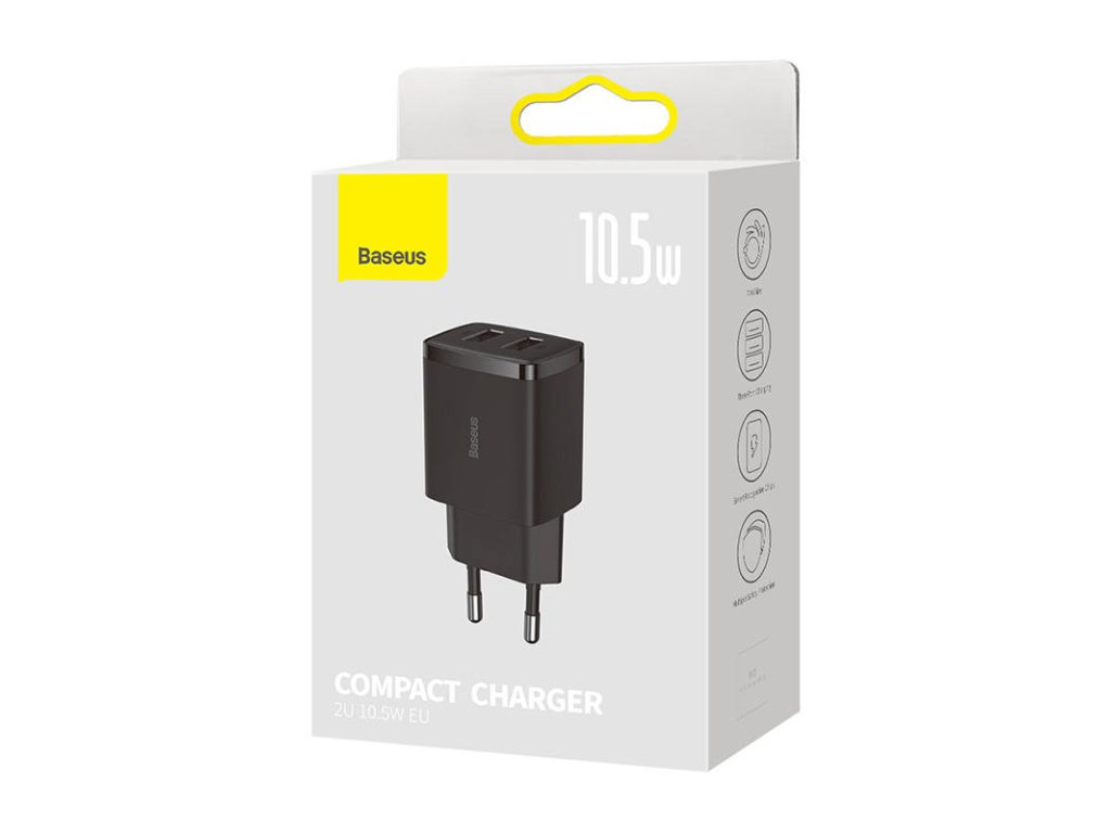Baseus kompakt gyorstöltő, 2x USB, 10,5 W (fekete)