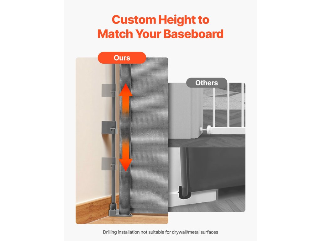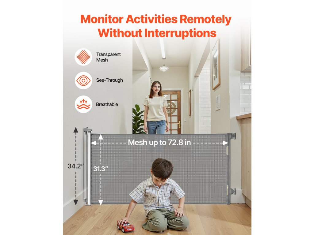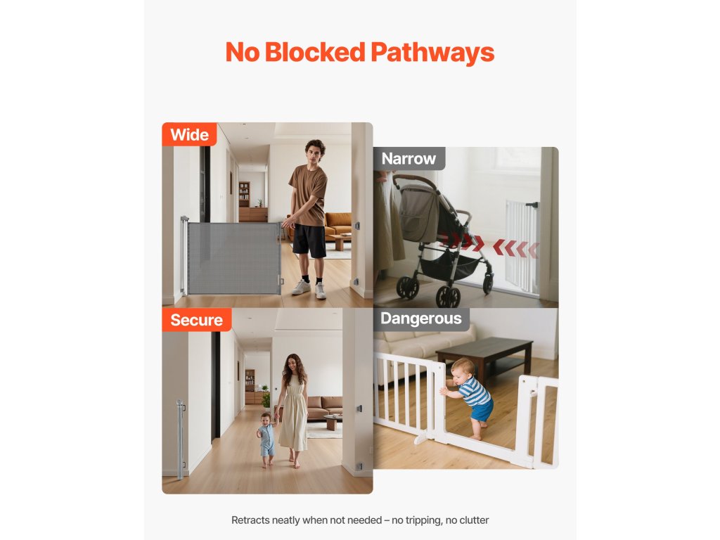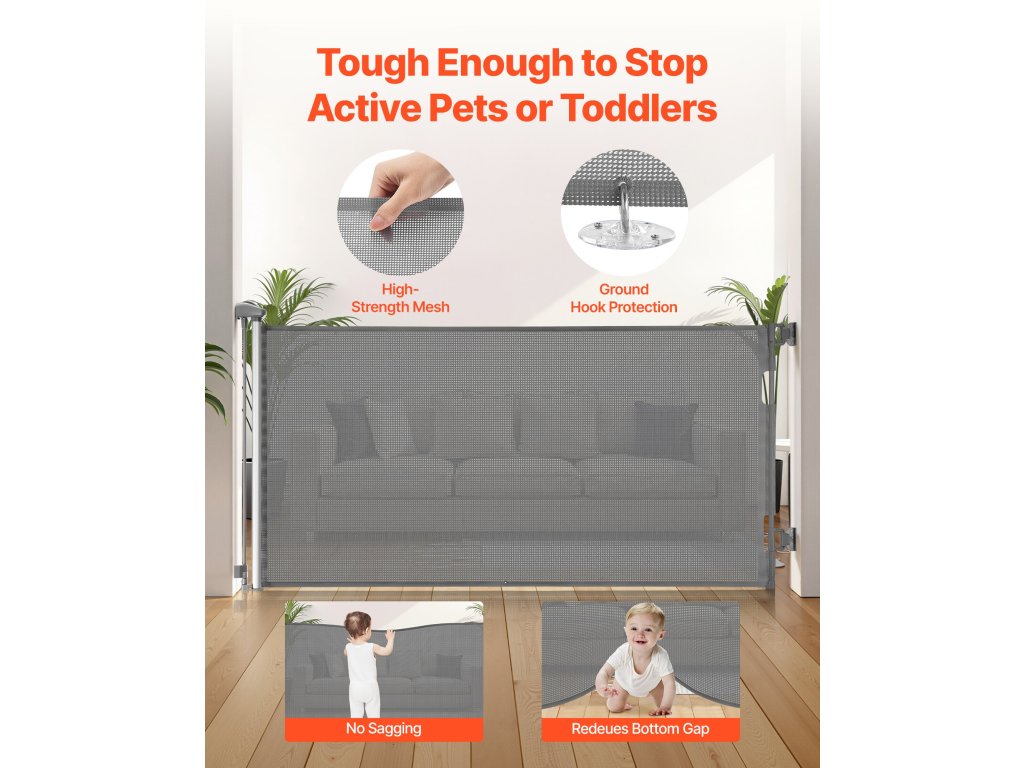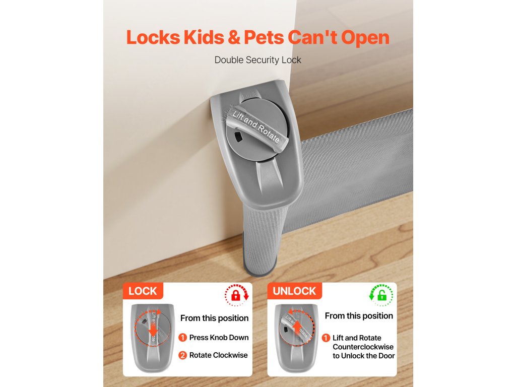 Behúzható biztonsági kapu gyerekeknek, 1850×795 mm-es hálómérettel és zárral