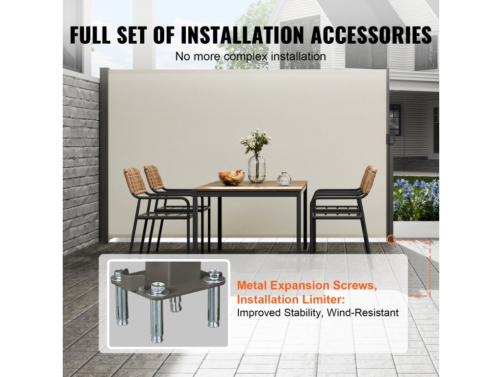 Nincs több bonyolult telepítési lépés! Behúzható paravánunkat a felhasználó kényelmét szem előtt tartva terveztük. A teljes szerelési tartozékkészletnek és az egyértelmű utasításoknak köszönhetően a telepítés egyszerű, és nem igényel szakértelmet. Hozzon létre gyorsan egy kényelmes kültéri teret!