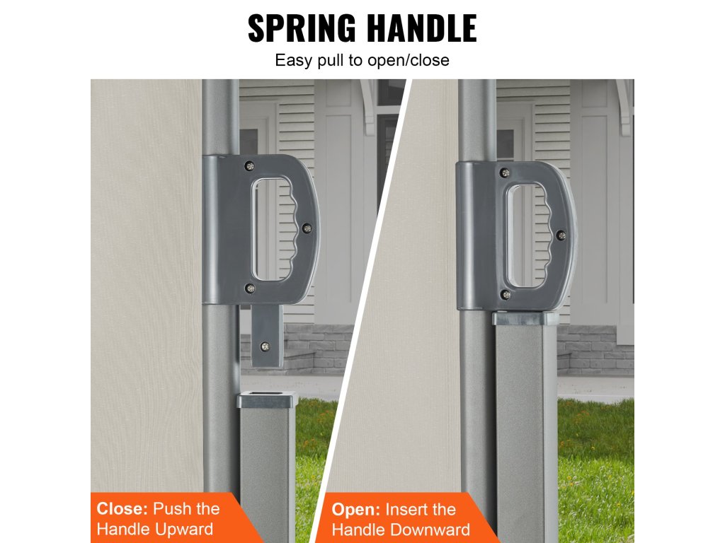 A kültéri adatvédelmi paraván egy könnyedén behúzható fogantyúval rendelkezik, amely rugós mechanizmussal rendelkezik, amely minden alkalommal biztosítja a sima és könnyű működést, amikor ki- vagy behúzza. Nincs szükség extra erőfeszítésre - csak egy gyengéd rántás, és máris élvezheti az azonnali árnyékot.