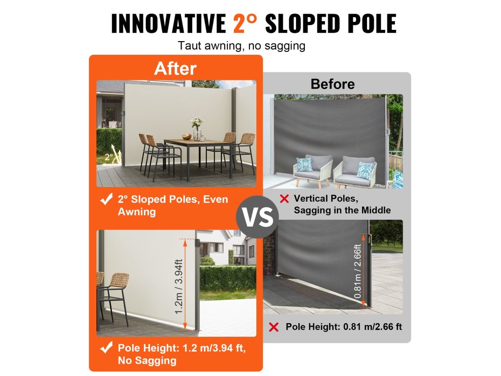 Nincs több bonyolult telepítési lépés! Behúzható paravánunkat a felhasználó kényelmét szem előtt tartva terveztük. A teljes szerelési tartozékkészletnek és az egyértelmű utasításoknak köszönhetően a telepítés egyszerű, és nem igényel szakértelmet. Hozzon létre gyorsan egy kényelmes kültéri teret!