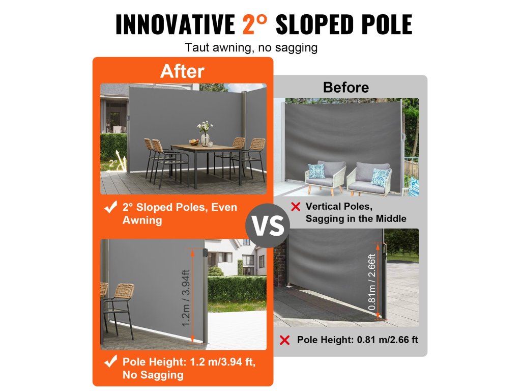 Nincs több bonyolult telepítési lépés! Behúzható paravánunkat a felhasználó kényelmét szem előtt tartva terveztük. A teljes szerelési tartozékkészletnek és az egyértelmű utasításoknak köszönhetően a telepítés egyszerű, és nem igényel szakértelmet. Hozzon létre gyorsan egy kényelmes kültéri teret!