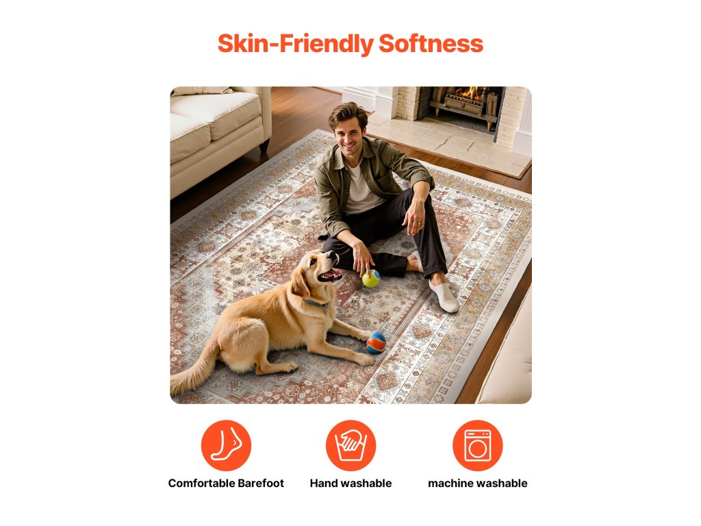 Beltéri szőnyeg 8×10 láb mosható, csúszásmentes, tartós barna