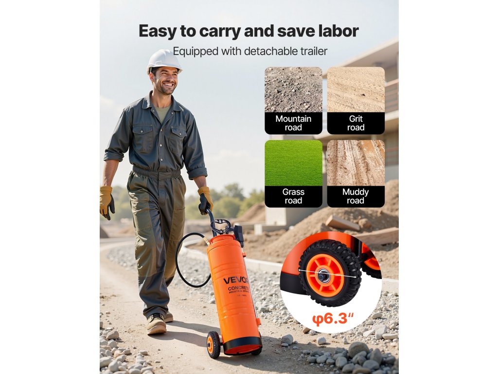 Betonszóró, rozsdamentes acél, 19 l, 52 cm-es rúd, 1,2/3 m tömlő, 2x fúvóka