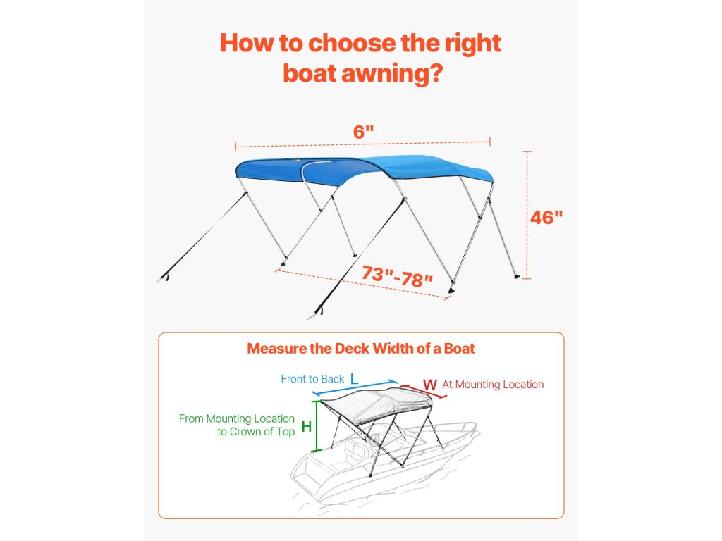 Bimini hajótető 600D poliészter, alumínium váz 72"×(73"-78")×46"