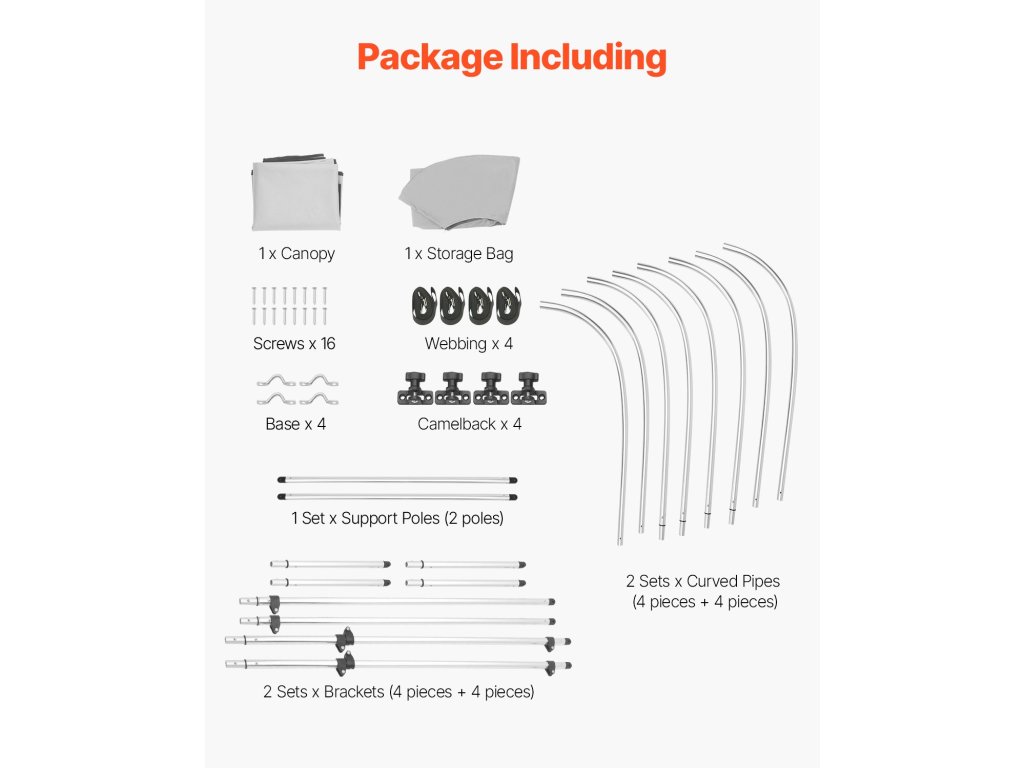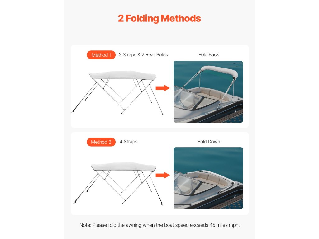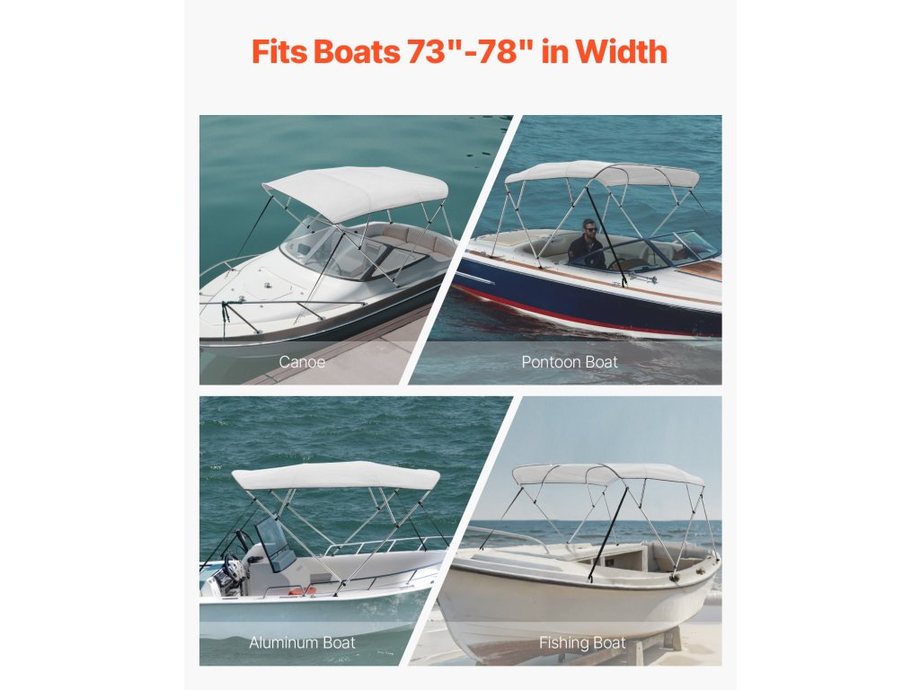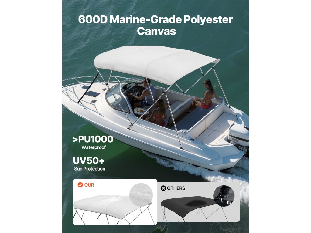 Az 1" vastag alumíniumötvözetből készült tartó rudakkal és tartós PP talppal ez a csónak bimini tető biztonságosan rögzül a hajójához. A korrózióálló anyagok biztosítják, hogy nem fog rozsdásodni a tengervíz vagy az eső miatt.