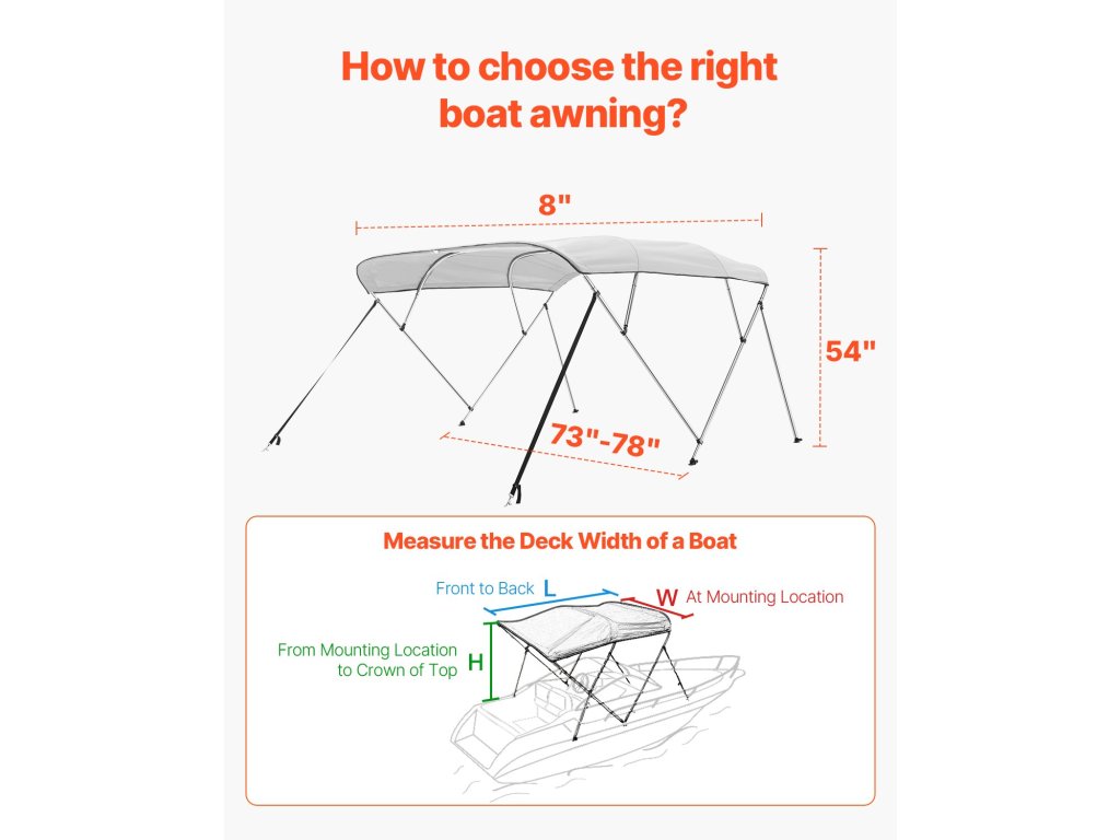 Biminitető hajóhoz 600D poliészter, alumínium váz 96"×(73"-78")×54"M