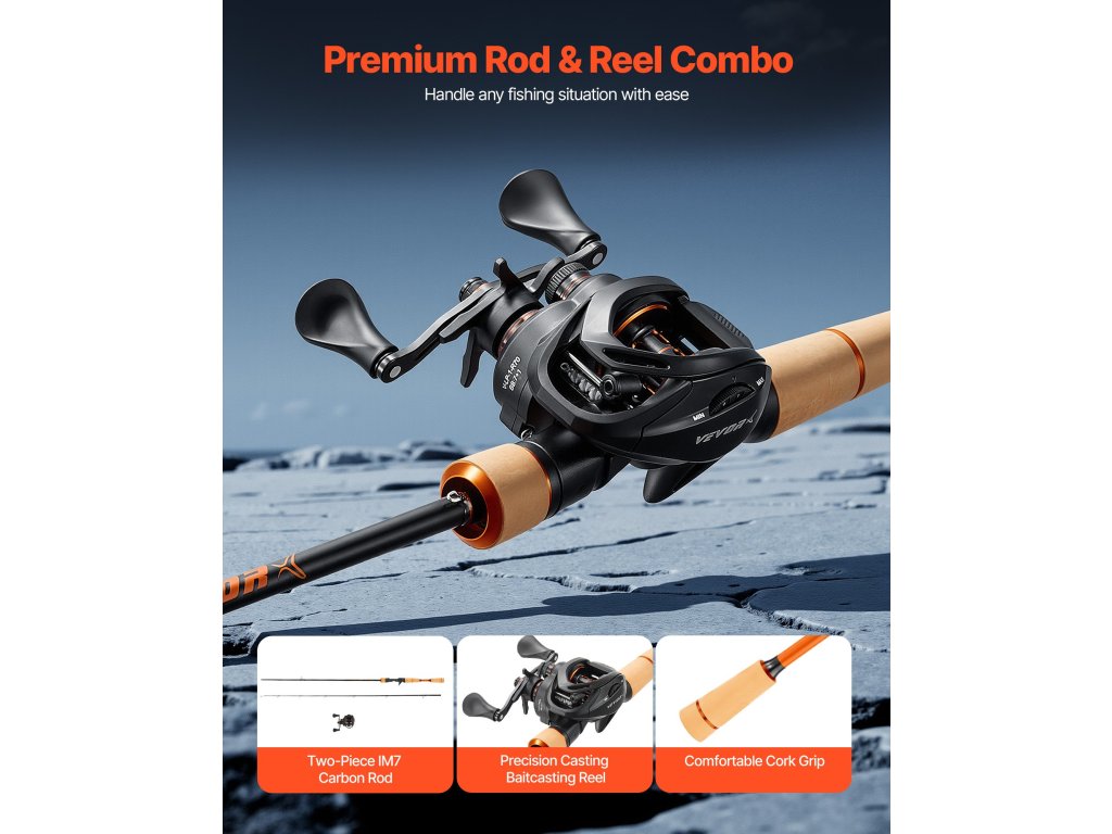 A bot és orsó horgász orsóink 2 darab IM7 karbon rúddal rendelkeznek, amely könnyű és alkalmas a különböző horgászhelyzetekhez. A sima működést biztosító precíziós orsóval kombinálva a parafa nyél kényelmet biztosít, az orsó 6+1 golyóscsapágya és 7,0:1 áttétele pedig zökkenőmentes tekerést biztosít.