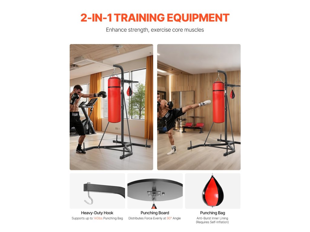 Boxzsák és gyorszsák állvány 2 az 1-ben, acél, teherbírás 140 font