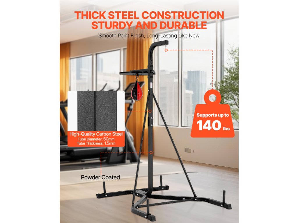 Nagy teherbírású boxzsák állványunk szénacélból készült, amely elég vastag ahhoz, hogy stabilitást biztosítson, és megakadályozza a kilengést vagy a billenést még a legintenzívebb edzések során is. Akár harci edzéssel, akár stresszoldással foglalkozik, ez az állvány a legigényesebb edzési igényeinek is megfelel.