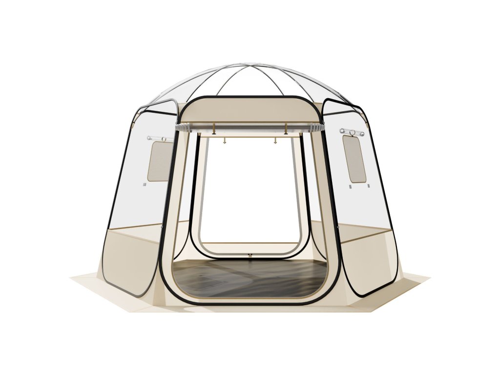 Ez a 4-8 fős pop-up buborékos sátor TPU és 210D Oxford szövetből készült, acélhuzallal a stabilitás és tartósság érdekében. A pop-up kialakításnak köszönhetően másodpercek alatt gyorsan felállítható, így ideális kültéri vagy hátsó udvari használatra. A több felhúzható oldalablak lehetővé teszi a könnyű légáramlás-szabályozást és a magánszféra védelmét.