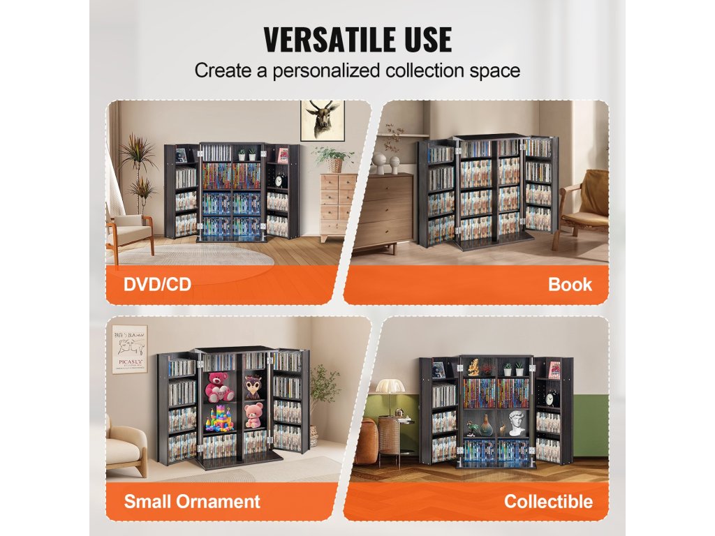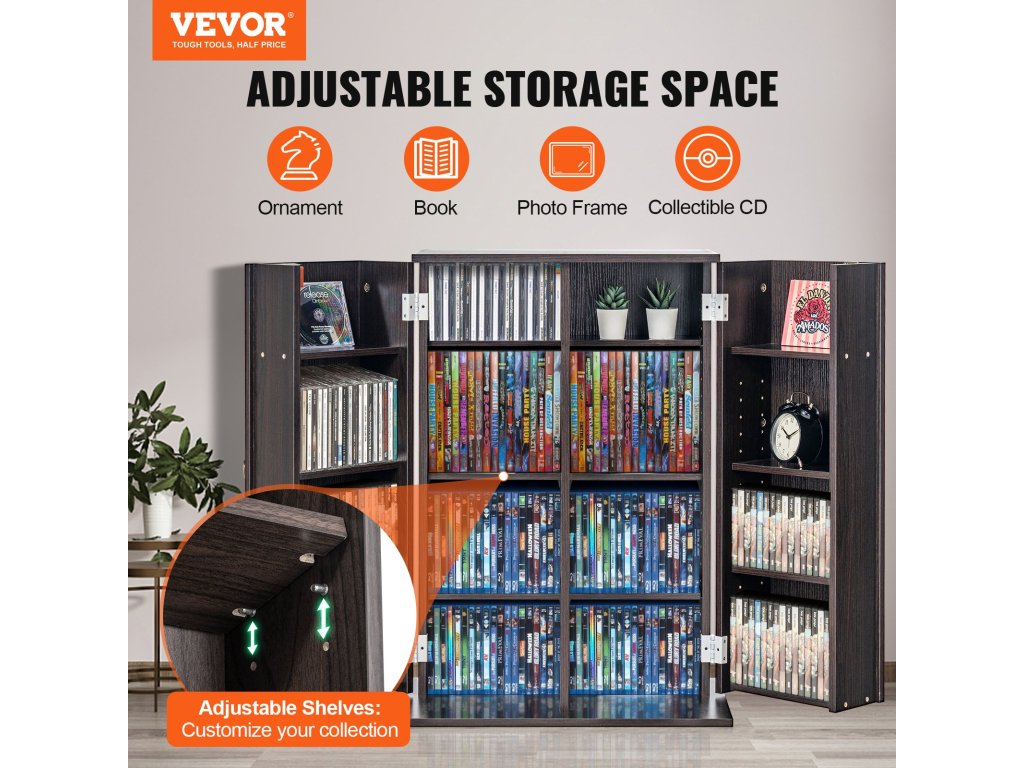 A DVD-szekrény, amely könnyedén befogadja a DVD-ket, CD-ket, könyveket, kisebb dekorációkat, fényképeket és gyűjteményes tárgyakat, tökéletes multifunkcionális tárolási megoldásként szolgál otthonában.
