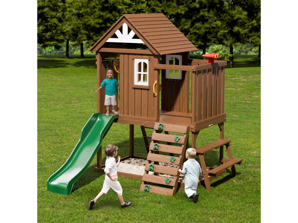 Ezt a gyerekeknek szánt játszóházat úgy tervezték, hogy ellenálljon az időjárásnak, vízbázisú festékkel kezelt felülettel, amely UV- és penészálló, így ellenáll a zord körülményeknek.