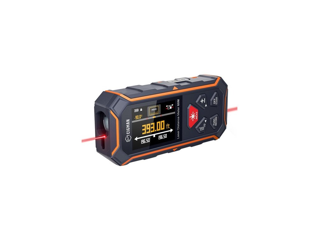 A CIGMAN új CD-60R kettős lézeres mérőműszere képes váltani a kétirányú és az egyirányú mérés között. A maximális mérési távolság 393 láb (120 m), +/-1/16 in (2 mm) pontossággal (az egyirányú mérés 196 láb 60 m-ig terjed). A mérési referencia beállítható a különböző mérési feladatokhoz. Nem kell a mérő lézert gyakran átállítani, ami nagymértékben növeli a hatékonyságot. II. osztályú biztonsági lézer, 1 mW kimeneti teljesítmény.