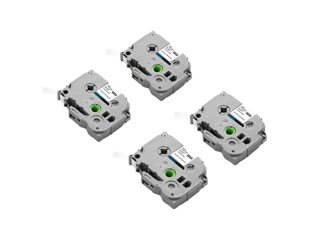 Címkenyomtató szalagok 4 db 0,47 hüvelyk / 12 mm fekete fehér alapon kompatibilis