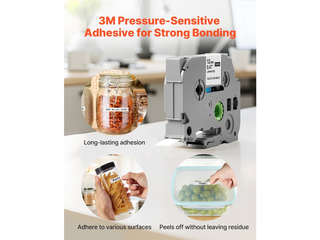 Címkekészítő szalagunk különböző Brother P-Touch címkekészítőkkel működik, mint például a PT-1230PC, PT-1280, PT-D200, stb. Nem kell aggódnia a kompatibilitás miatt - minden címkézési igényét gond nélkül kielégíti.