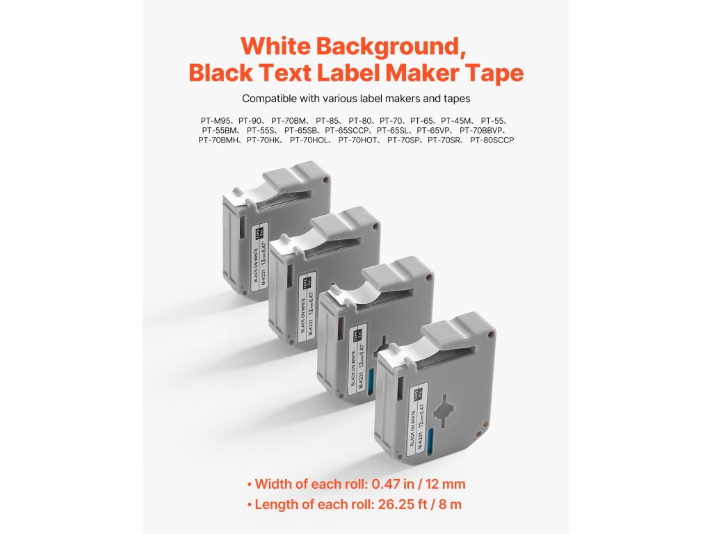 Címkekészítő szalagunk különböző Brother címkekészítőkkel működik, mint például a PT-M95, PT-90, PT-70BM stb. Nem kell aggódnia a kompatibilitás miatt - minden címkézési igényét gond nélkül kielégíti.
