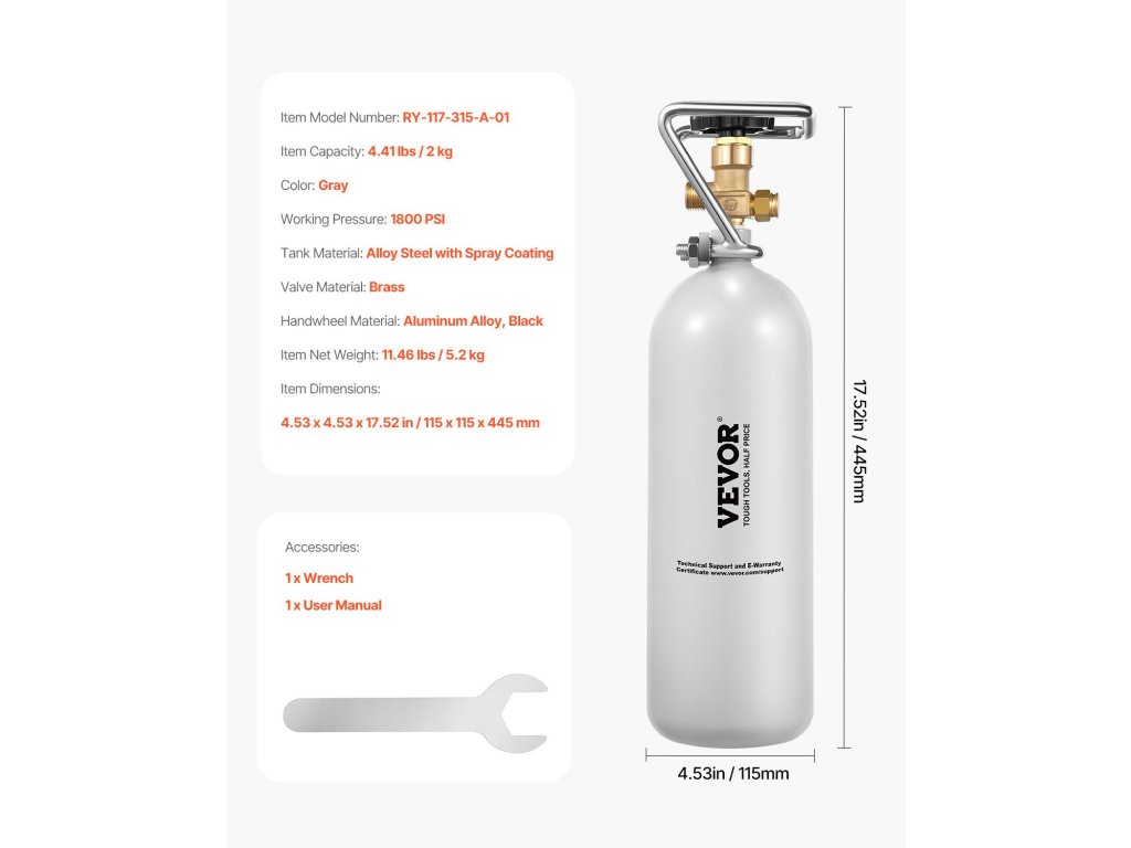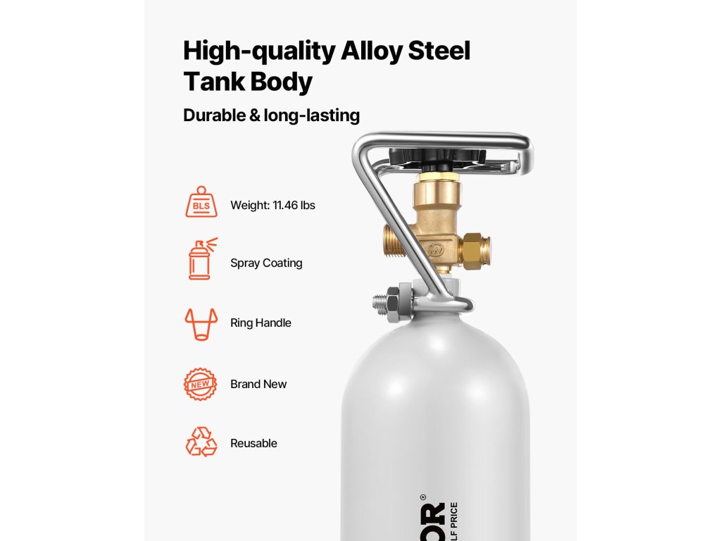 A prémium 11,46 font súlyú, ötvözött acélból készült CO2-tartályunk hosszú távú teljesítményt biztosít. A világosszürke festékszóró festék elegáns megjelenést biztosít, és megvédi a palackot a sérülésektől és a mindennapi kopástól, így a palack jó állapotban marad.
