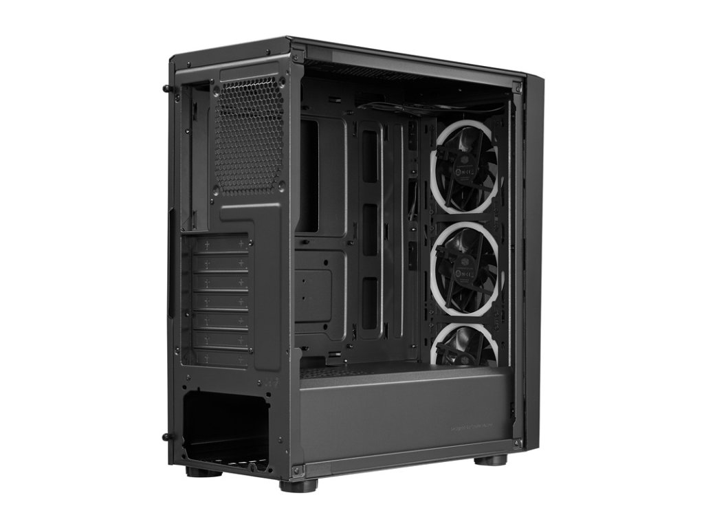 A CMP 510 akár hat ventilátor telepítését is lehetővé teszi: három elöl, kettő felül és egy hátul. Már három gyári 120 mm-es ventilátorral érkezik, amelyek ARGB világítással vannak felszerelve az elülső részre. A ház támogatja a vízhűtést is - elölre 280 mm-es, felülre akár 240 mm-es, hátulra pedig 120 mm-es radiátor szerelhető.