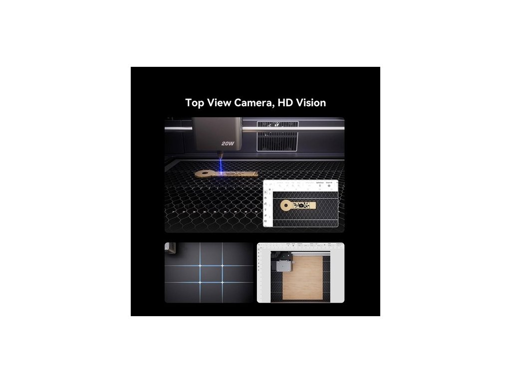 A beépített intelligens kamerának köszönhetően mindig tiszta rálátása van a munkadarabra. Helyezze el a terveket közvetlenül az érintőképernyőn, ellenőrizzen vizuálisan minden lépést, és a "megközelítőleg" milliméterpontos eredményekké váljon.