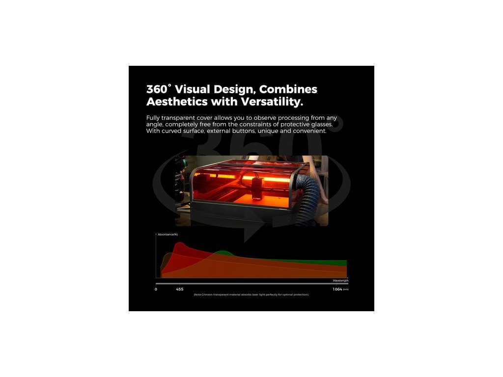 A teljesen átlátszó burkolat lehetővé teszi, hogy bármilyen szögből megfigyelhesse a feldolgozást, teljesen a védőszemüveg korlátai nélkül. Ívelt felülettel és külső gombokkal rendelkezik, egyedi és kényelmes.