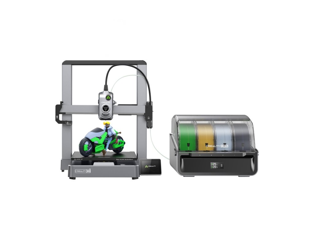 A Creality Hi Combo egy innovatív 3D nyomtató, amely többszínű nyomtatást tesz lehetővé a Color-Fusion System (CFS) rendszernek köszönhetően, amely további modulok csatlakoztatásával akár 16 színt is lehetővé tesz. Olyan fejlett funkciókkal felszerelve, mint az automatikus szintezés, a gyors asztalfűtés, az intelligens RFID-filamentfelismerés és az aktív rezgéscsillapítás, rendkívüli pontosságot és zökkenőmentes működést biztosít még extrém sebességnél is. Fémszerkezetének, csendes működésének (<48 dB), intelligens szálszabályozásának, valamint a Creality OS és Creality Print operációs rendszereken való működésének köszönhetően ideális a 3D nyomtatás profijai és a kezdők számára egyaránt.