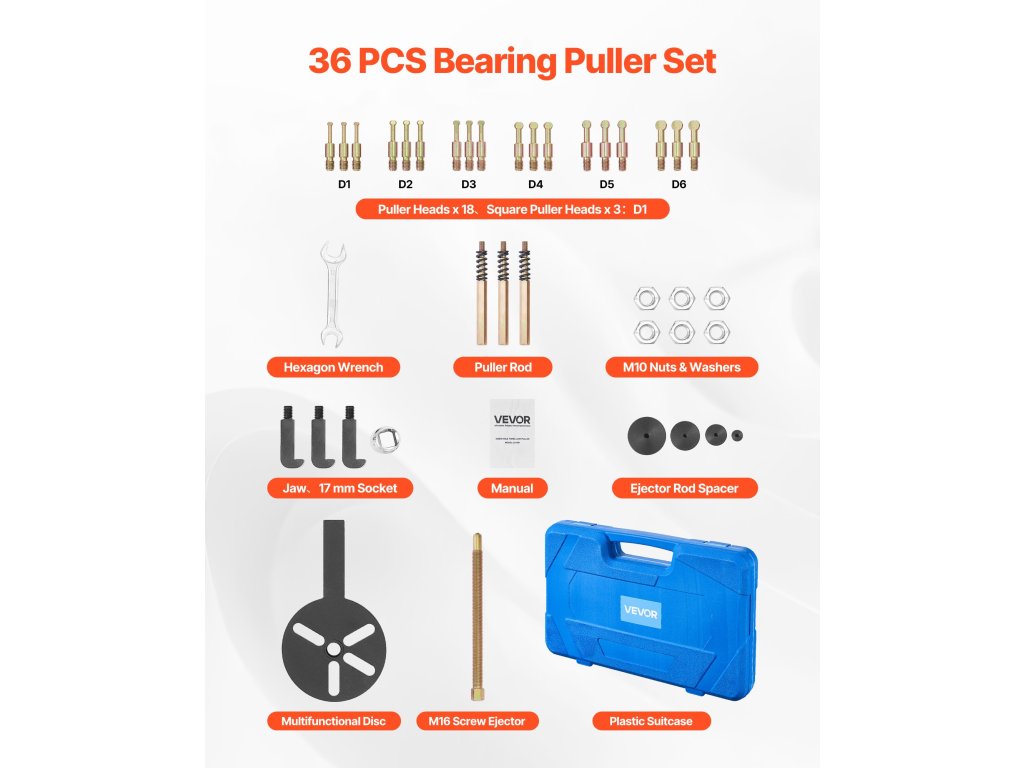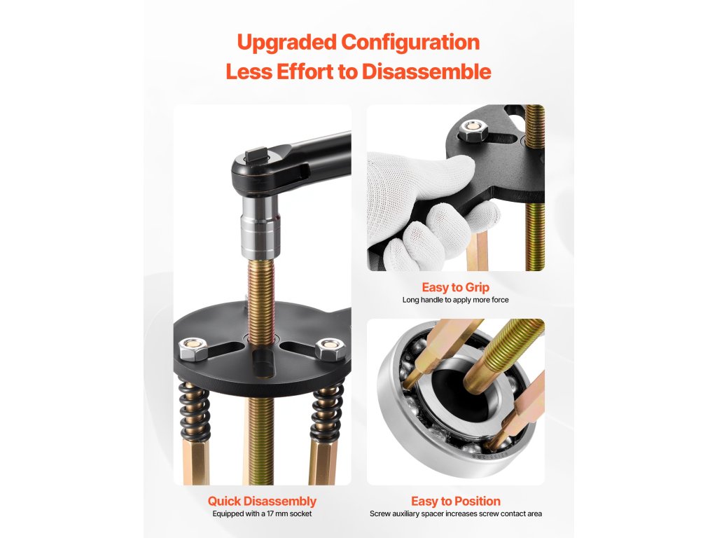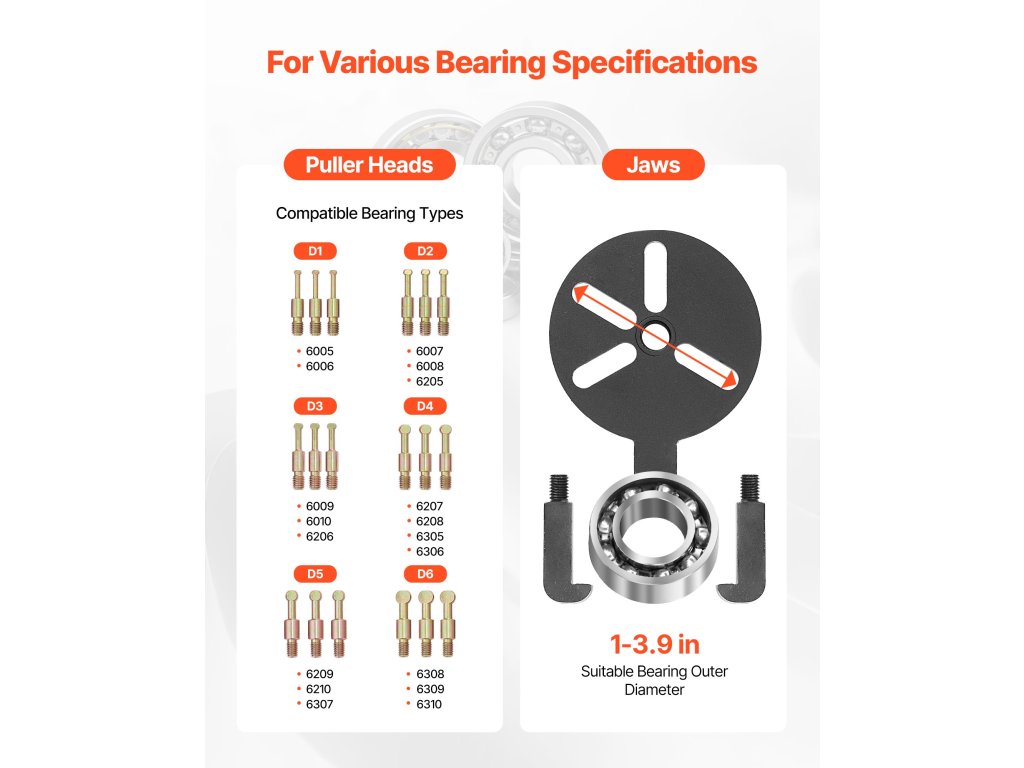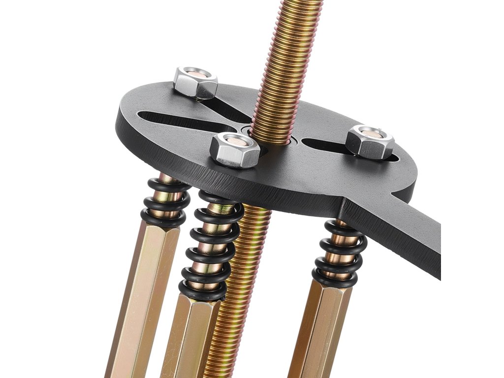 Ez a csapágyeltávolító készlet csavaros távtartó alátéteket tartalmaz, amelyek kiszélesítik a csavar érintkezési felületét, és segítenek a csapágyak hatékonyabb eltávolításában.