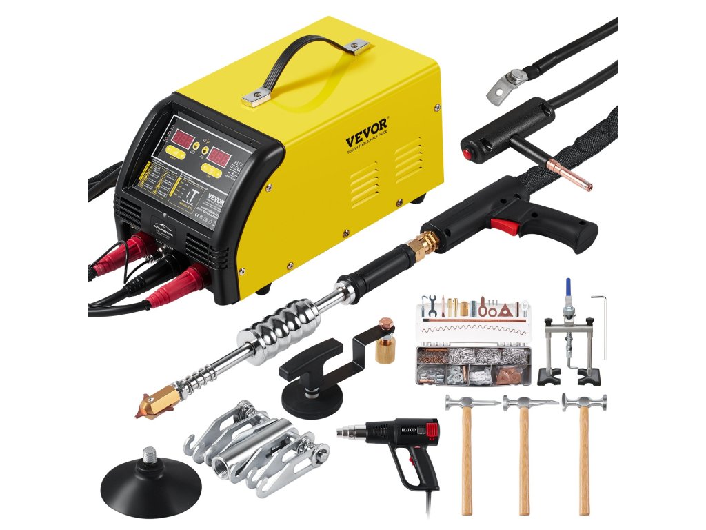 Az 5 kW-os, automatikus/manuális hegesztési móddal és 2 hegesztőpisztollyal rendelkező VEVOR Dual Pro Stud Welder teljes körű megoldást kínál mind az acél, mind az alumínium autóipari panelekhez. a 10 hegesztési üzemmód a javítási igények széles skáláját elégíti ki, így a professzionális és hatékony autójavításhoz a legmegfelelőbb eszköz.