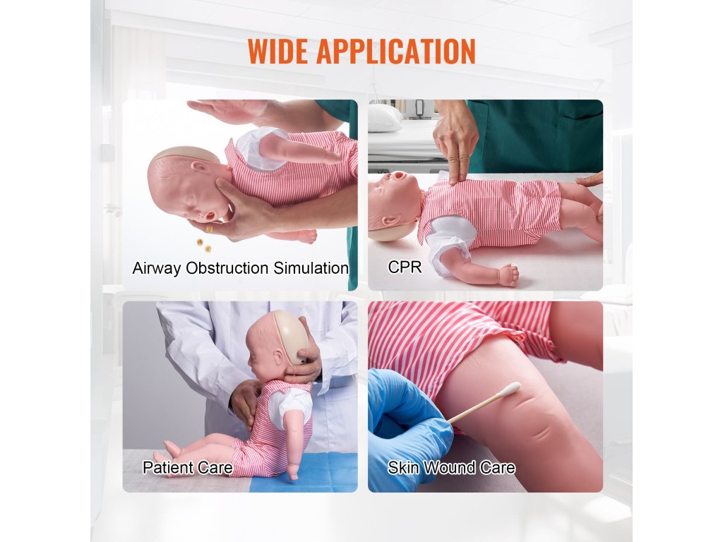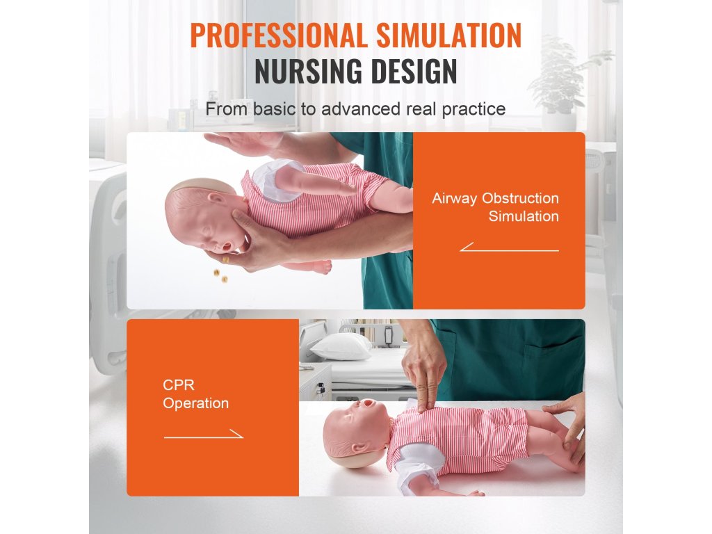 Ez az ápolási próbabábu képes szimulálni a normál és elzáródott légutakat, lehetővé téve a légutak behatolásának, a fulladásnak, a mellkas kitágításának és a standard újraélesztési eljárásoknak a gyakorlását.