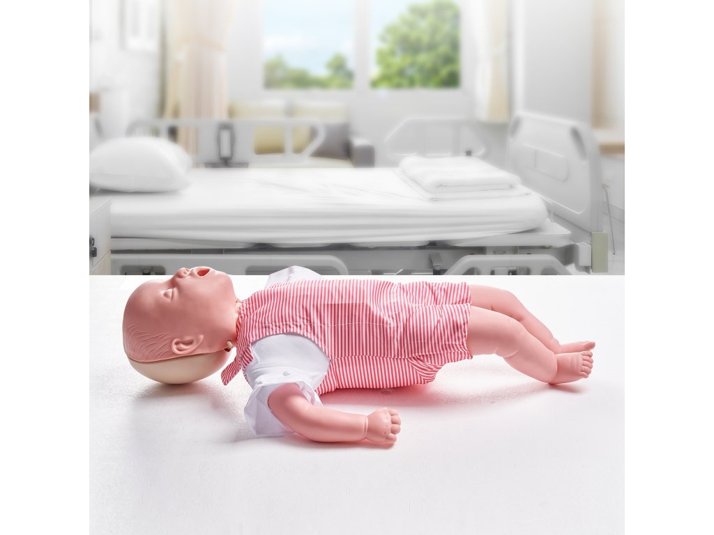 Csecsemő próbababa újraélesztéshez és Heimlich-féle tréninghez, légúti tréninghez